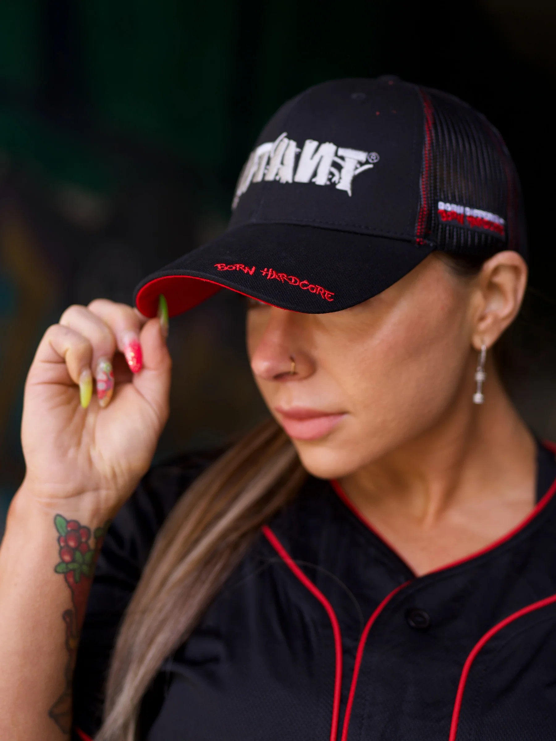 GET BIG. GET STRONG. BY ANY MEANS NECESSARY. The MUTANT® BORN HARDCORE Baseball Cap is your bodybuilding badge of honor. With a front that displays MUTANT in badass silver thread made from 100% cotton and a back panel of 100% polyester for rugged durability, this cap is built to the brim to endure your relentless lifestyle and your muscle obsession. Wear this cap in the gym, on the streets, or wherever your hardcore journey takes you.