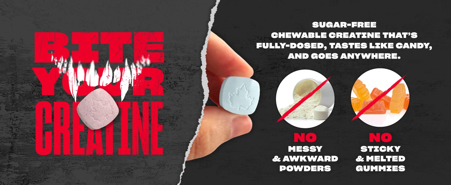 Creatine gummies? NOPE! Too damn messy. Thatâs why we created CREATINE BYTZ! Creatine BytzâĒ delivers fully-dosed, pure creatine in a chewable tablet format, ensuring your muscles always have the explosive fuel they needâwithout the hassle of shakers and gross gummies. LETâS GO!